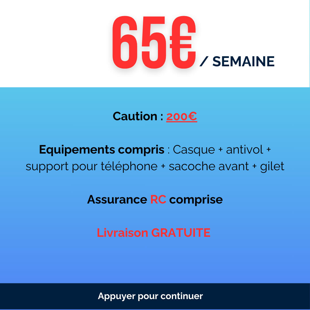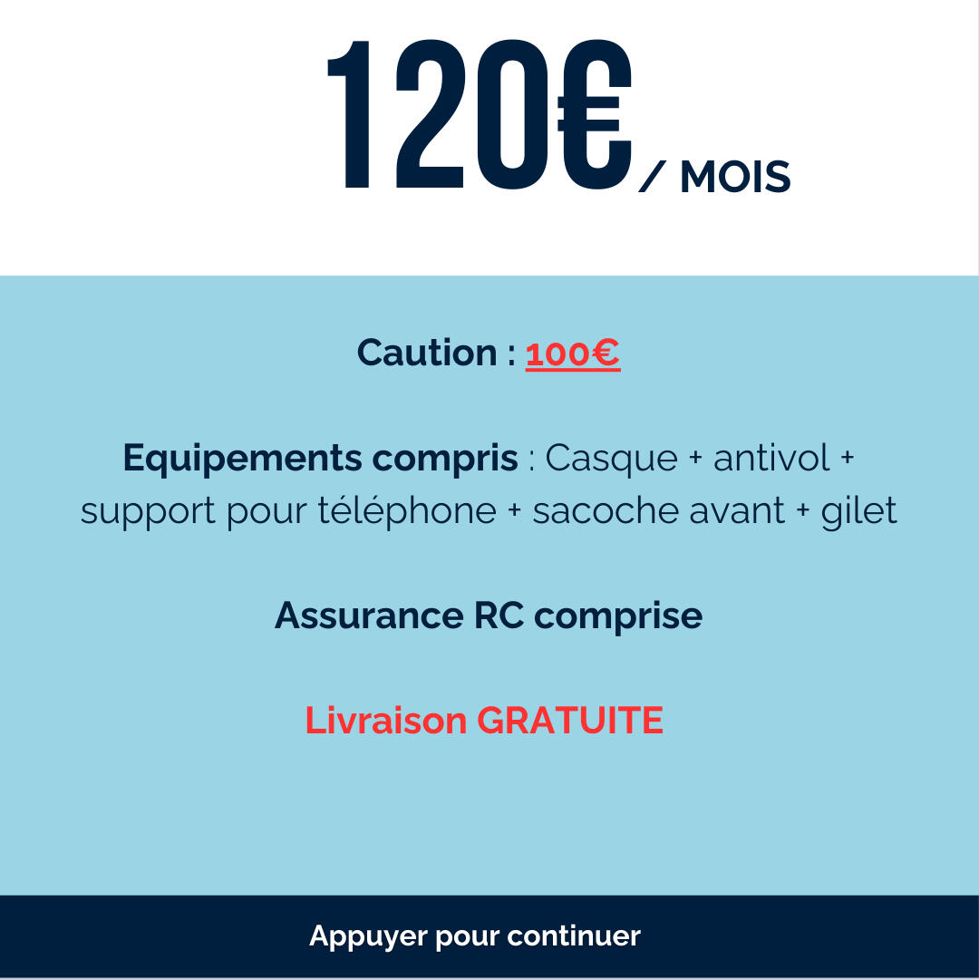 Choisissez le Modèle de trottinettes, le Pack Equipement que vous souhaitez ainsi que le forfait de la location qui vous conviendra le mieux et remplissez le formulaire pour une demande de réservation.Vous serez recontactés dans les plus brefs délais pour vous notifier de la disponibilité d'une(des) trottinette(s) et fixer un créneau afin d'être livré GRATUITEMENT à l'adresse de votre choix.Vous avez des questions ou simplement besoin de plus de renseignements ?Contactez le 07 45 53 48 65 ou par e-mail trottloc63@gmail.com !